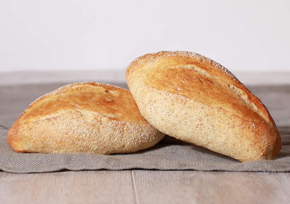 rustikales Brötchen mit Kartoffelmehl und Weizenmehl, bestreut mit Weizenschrot, vegetarisch